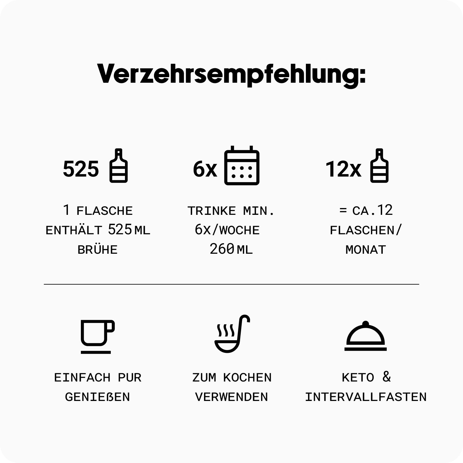 Zum Recovern ist Ruhe und genug Flüssigkeitszufuhr das A Und O. Knochenbrühe liefert zusätzlich wichtige Nährstoffe, um wieder zu Kräften zu kommen.