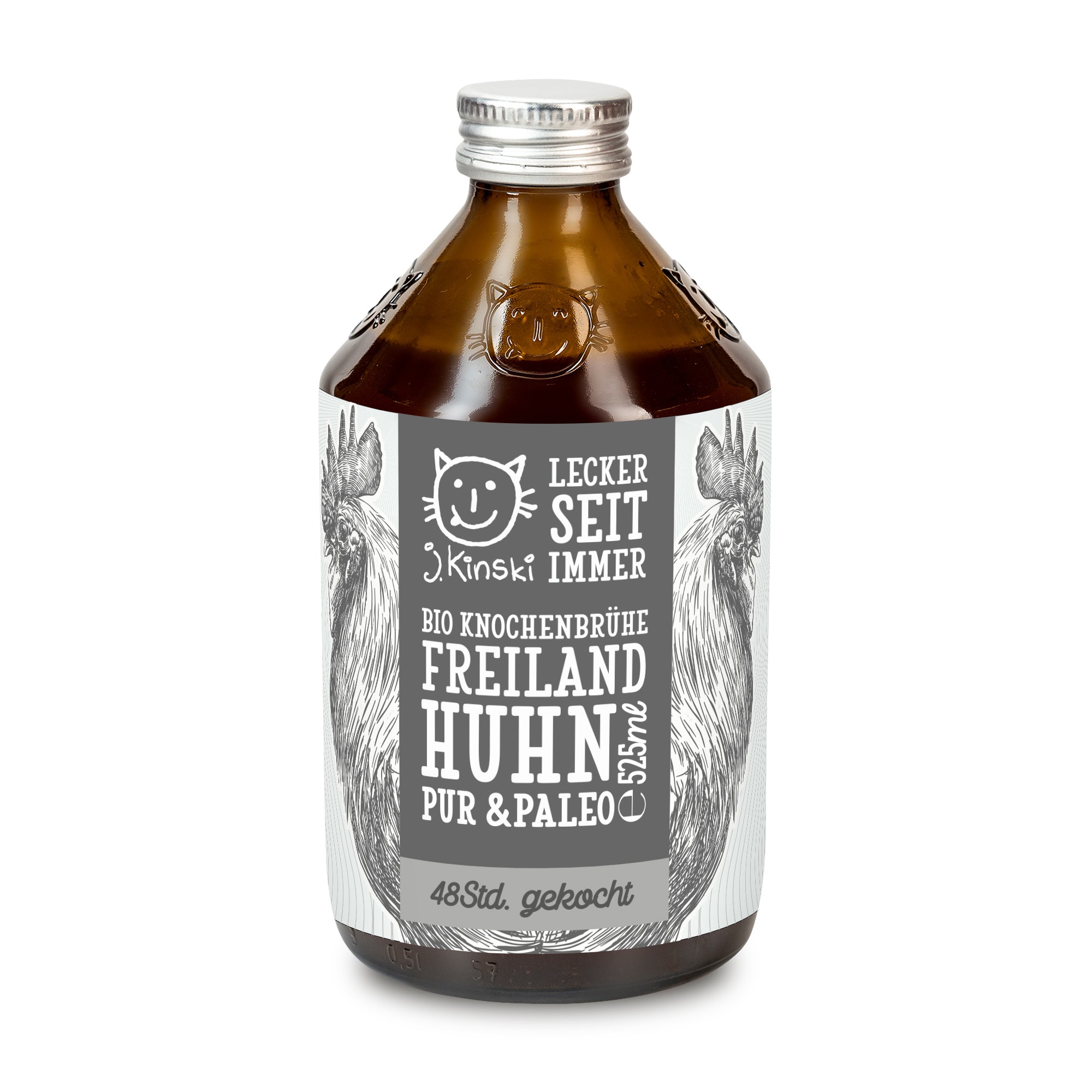 100% Bio-Freilandhuhn aus Deutschland, schonend über 48h gekocht - ohne Zucker oder sonstigem Kram.