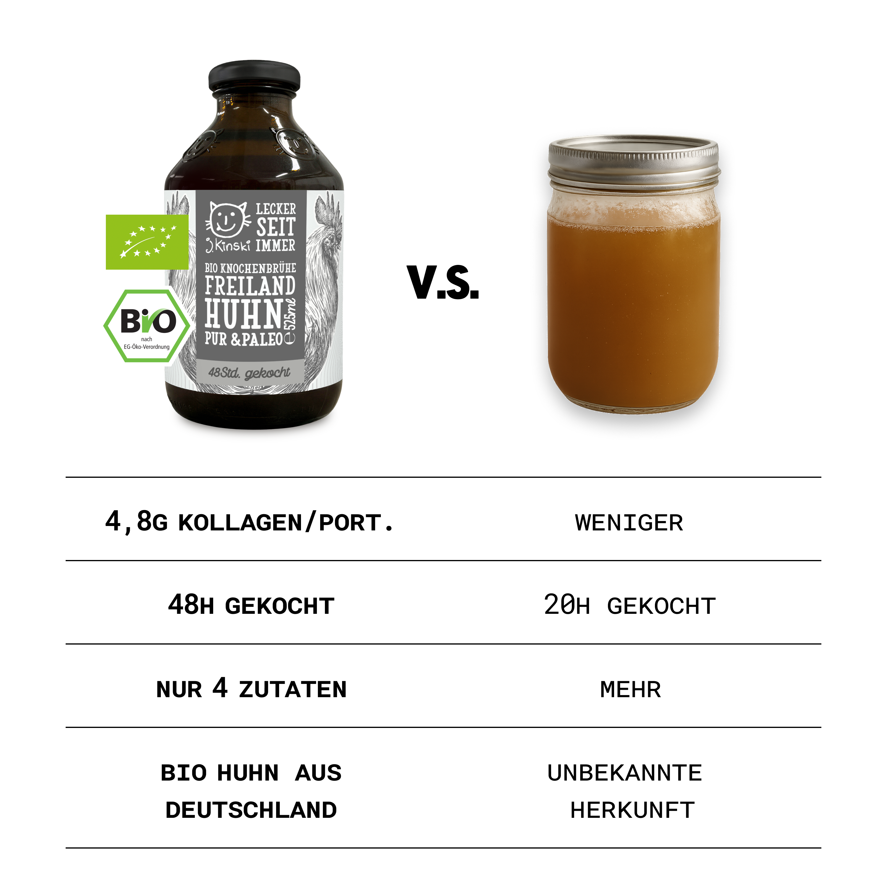 Unsere Klassiker sind perfekt für den Einstieg in die Welt der Knochenbrühen - Beste Inhaltsstoffe und etwas mehr Zutaten, um den Geschmack insgesamt abzurunden. Hier wurden neben Knochen auch Salz, Gemüse und Gewürze verwendet. Perfekt zum Trinken oder zum Kochen.